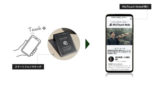 IEGNIM実店舗では、来店者が直接作品に触れながら、スマートフォンを使って「WizTouch Note」の専用タグにタッチすることで、作家の情報を得たり、作家に対してコメントを残したりできるようになりました。「WizTouch Note」が作り手と使い手、双方の声を届けるツールとして機能し、普段なかなか交流の機会のない業界に新たなコミュニケーションの場を提供します。