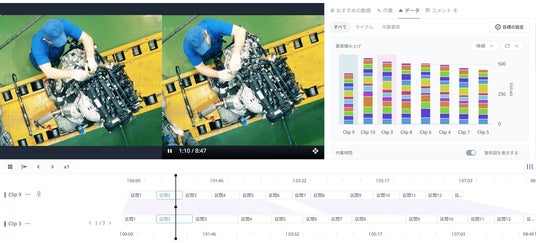 通常、分析の精度を上げるために必要とされる「大量の学習サンプル」を必要としないのが特徴で、作業のばらつきや抜け、ムダをスピーディーに発見することで、作業効率のアップなど現場の生産性向上に貢献します。
