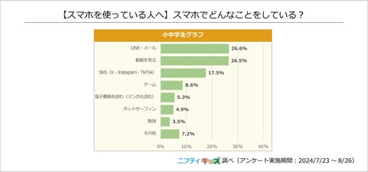 1位が「LINE・メール」、僅差で2位に「動画を見る」がランクインしました。続いて3位に「SNS(X・Instagram・TikTok)」、4位が「ゲーム」でした。