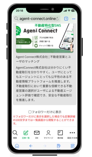 この設定をすることで、不動産エージェントはフォロワーのみに記事を提供出来るようになりました。フォローしているユーザのみに公開される限定記事やここだけの有益情報など、密にコミュニケーションが取れるようになりました。