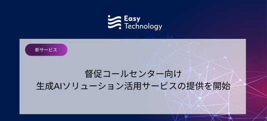 株式会社Easy technology(東京都新宿区、代表取締役:三宅俊也、以下「Easy technology」)は、督促コールセンター向け生成AIを活用したソリューションサービスをお客様へ提供開始したことを発表いたします。