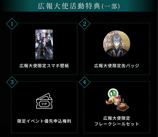 などの本作品の広報活動を行うと、活動に応じてポイントが貯まり、限定特典と交換することができます。また、貯まった活動ポイントに応じて広報大使ランクが上がり、交換できる限定特典や種類も増えていく予定です。