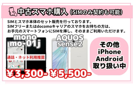 3,300円・5,500円端末の取り扱い開始!スマホとSIMカードセットで最安8,800円が数量限定発売!