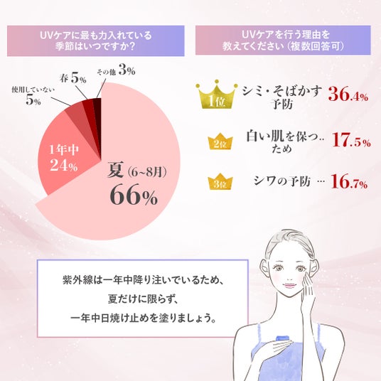 【UVケアに最も力入れている季節はいつですか?また、UV(紫外線)ケアを行う理由を教えてください(複数回答可)】