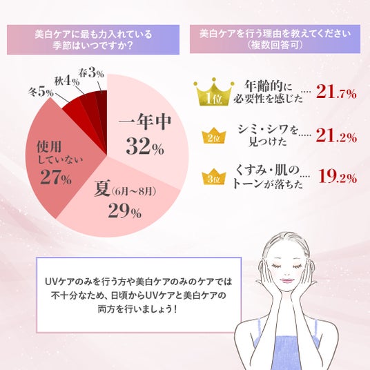 【美白ケアに最も力入れている季節はいつですか?また、美白ケアを行う理由を教えてください(複数回答可)】