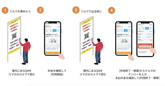 利用者はスマートフォンでQRコードを読み取り、オンラインで駐車料金を支払うことが可能です。また、精算機やゲートなどの設備投資が不要なため、低コストでの駐車場運営を実現します。