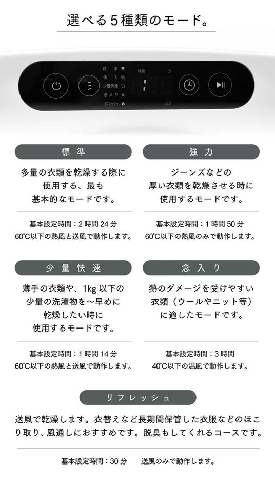 乾燥時間:標準コース基準(2時間24分)最短(10分)