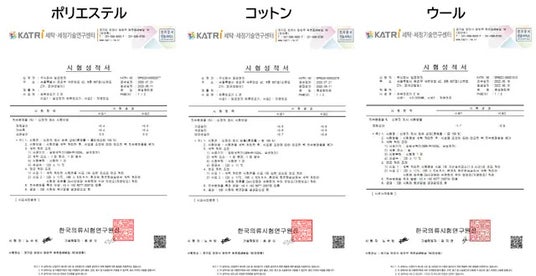 ◆テスト機関:KATRI(韓国衣類試験研究院)