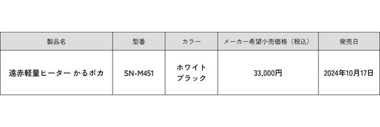 シロカ株式会社(東京都・千代田区)は、遠赤外線と輻射熱のWの熱効果で身体もお部屋もあたためる「遠赤軽量ヒーター かるポカ」に、より足元のあたために特化したモデルを追加し、一部販路限定で2024年10月17日に発売します。