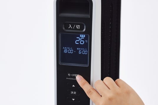 設定温度と本体周囲温度の差にあわせて、出力を自動で切り替え、消費電力を抑えながら運転する「節電モード」を搭載。