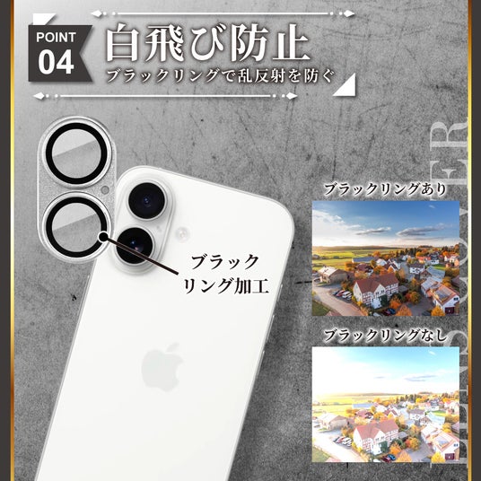 レンズ部分の周りにブラックリング加工を施し、撮影時の乱反射を軽減することで