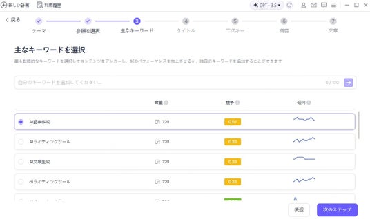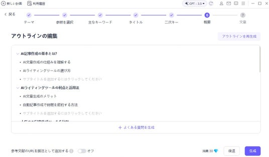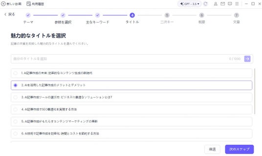 2.記事のタイトル、導入文、見出し、本文をAIで順番に作成・カスタマイズできる