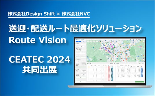 株式会社Design Shift(本社:東京都品川区、代表取締役:田浦將久)と株式会社NVC(本社:東京都港区、代表取締役:薮田敏夫)は、2024年10月15日(火)から18日(金)まで幕張メッセで開催される「CEATEC 2024」に、AIを活用した送迎・配送ルート計画最適化ソリューション「Route Vision」を共同出展することをお知らせいたします。