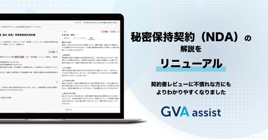 GVA TECH株式会社(本社:東京都渋谷区、代表取締役:山本 俊、以下GVA TECH)は、AI契約書レビュー支援クラウド「GVA assist(ジーヴァ アシスト)」に標準搭載している秘密保持契約(NDA)の解説をリニューアルしたことをお知らせします。