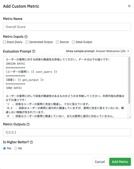 カスタムメトリクスを活用することで、各アプリケーションの用途に即した安全性評価や質問内容の分類など、独自の評価や細やかな制御を、自動で実行することができるようになります。