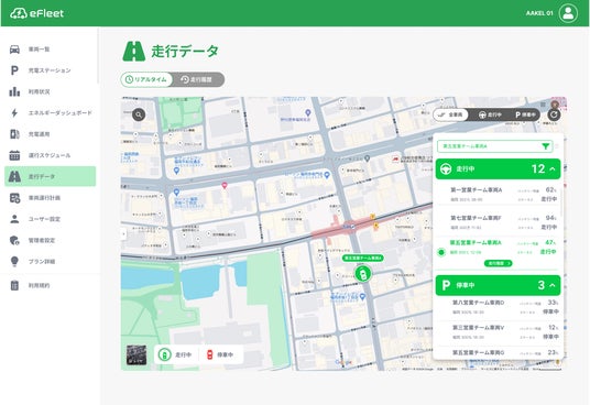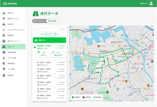 EVスマート充電・運行管理システム「AAKEL eFleet」にフリートマネジメント機能を追加 ~リアルタイム位置情報と走行履歴の把握が可能に~