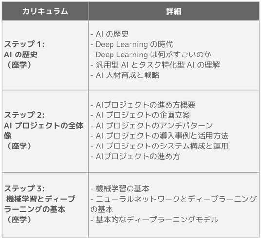 ■ AIプロジェクトの全体像を理解し、基礎的なスキルを身につける