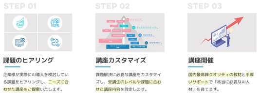 - 教育工学に基づいて設計された学習効率の高い講座(同期型研修で機械学習メンターによる質疑の即時性と高いインタラクティブ性のある講座。受講生同士の交流を促す仕組み)