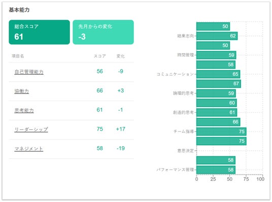 - 最新の人材データの可視化:常に「最新」の人材データから自己や組織の現状を可視化できます