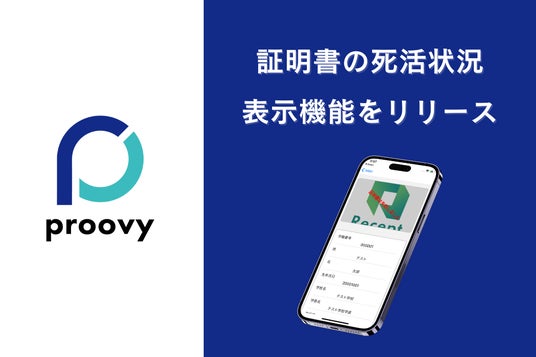 DID/VC技術を専門に扱うベンチャー企業、株式会社Recept(本社:東京都渋谷区、代表取締役社長:中瀬 将健)は提供アプリ「proovy」にてデジタル証明書の死活状況がアプリ表示上で確認できる機能を提供開始いたしました。