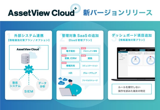 今回の新バージョンでは、外部システムとのデータ自動連携、管理対象SaaSの追加、ダッシュボード表示項目の追加など、大きく3点の機能追加および強化を実施しております。