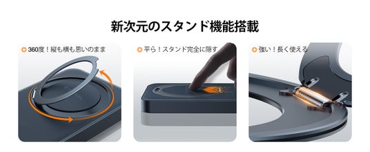 360度回転スタンドで、両手を解放!機能性と携帯性を兼ね備えた
