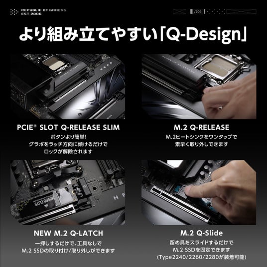 より組み立てしやすい「Q-Design」「PCIE SLOT Q-RELEASE SLIM」