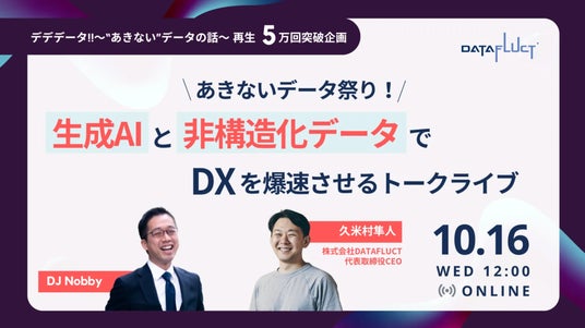 【10月16日 12:00~】DATAFLUCTポッドキャスト5万回再生記念「あきないデータ祭り!生成AIと非構造化データでDXを爆速させるトークライブ」開催決定