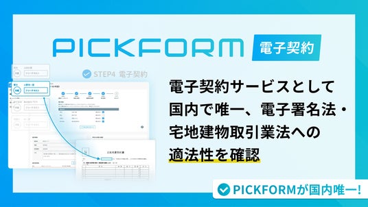 不動産・建築DXプラットフォーム「PICKFORM」シリーズを開発する株式会社PICK(以下「PICK」)(本社:東京都目黒区、代表取締役社長:普家 辰哉)は、産業競争力強化法に基づく「グレーゾーン解消制度」を活用し、「PICKFORM 電子契約」で提供している電子署名が、行政(国・地方公共団体)との間で締結する契約においても利用可能であることを正式に確認いたしましたので、ここにお知らせいたします。