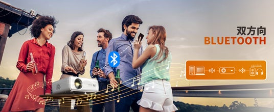 Aurzenプロジェクターは、双方向Bluetooth 5.1とデュアルバンドWiFi(2.4G+5G)を搭載し、外部デバイスとの接続で音声体験を強化。5G WiFiにより、低遅延で超高速ストリーミングが実現され、独立したBluetoothスピーカーとしても使用可能です。