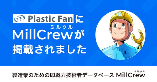 製造業に特化した即戦力技術者のスカウトサービスMillCrewが、国内射出成形業界トップクラスの専門メディア「Plastic Fan」に掲載されました。