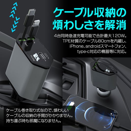 カー用品メーカーMAXWINから巻き取り式ケーブル付き急速USBカーチャージャー『PCA37』の販売を開始しました。