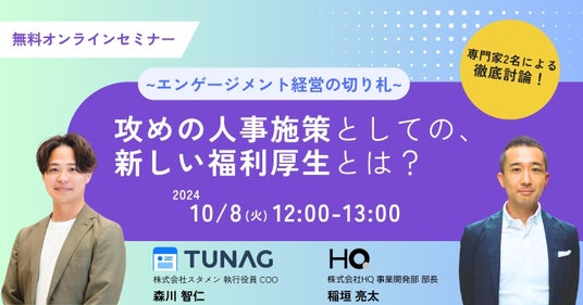 「福利厚生をコストから投資へ」をビジョンに掲げる株式会社HQ(読み:エイチキュー、本社:東京都新宿区、代表取締役:坂本祥二)は、2024年10月8日(火)に株式会社スタメンとの共催セミナーを開催いたします。
