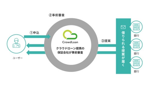 クラウドローンは、貸し手である銀行と借り手である個人を、オンラインでつなぐマッチングプラットフォームです。ユーザーはクラウドローン提携の銀行保証会社において事前審査を行うことで、自身にピッタリの銀行ローン選びができる国内初のサービスです。