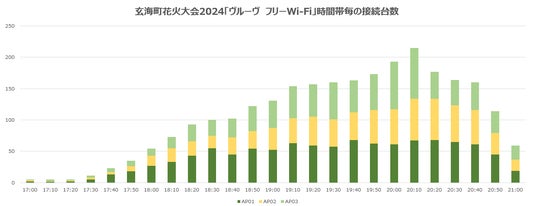 ▼図2「ヴルーヴのフリーWi-Fiの時間帯ごとの接続台数推移」(会場内に3台のAccess Pointを設置)