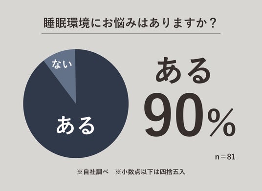 お客様の声を観察すると、日々の忙しさや生活習慣から、睡眠についての様々なお悩みがあることが分かり、アンケートを行いました。90%の方が睡眠環境に悩みがあると回答。スタッフもこの結果には共感し、悩みを抱える方に、もっとリラックスして睡眠を自分のためのセルフケアタイムにしてほしいという想いから、このアイマスクを作ろうと立ち上がりました。