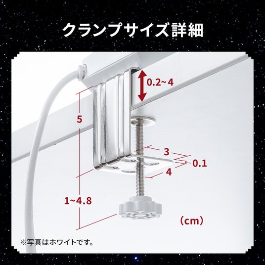 本製品はクランプ取り付けに対応しており、固定して使用することが可能です。滑りやすいテーブルや狭いスペースでもしっかりと設置できるため、会議中や展示会での使用におすすめです。