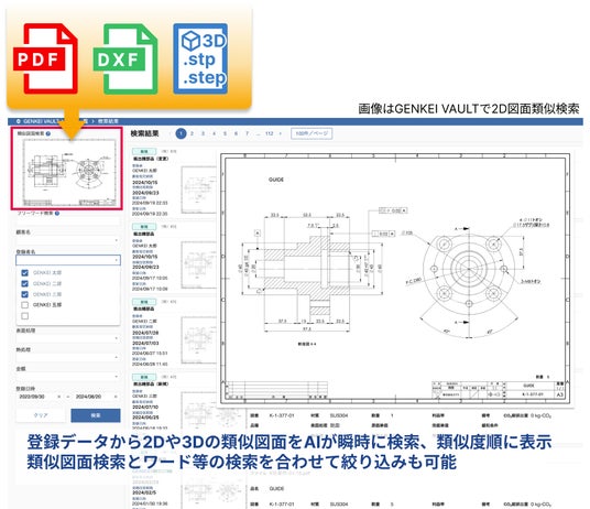 クラウド案件管理・加工原価見積り「GENKEI VAULT」、調達業務の合理化「GENKEI LINK」に、2D・3D対応のAI類似図面検索機能を搭載、図面データの活用による業務効率化を実現