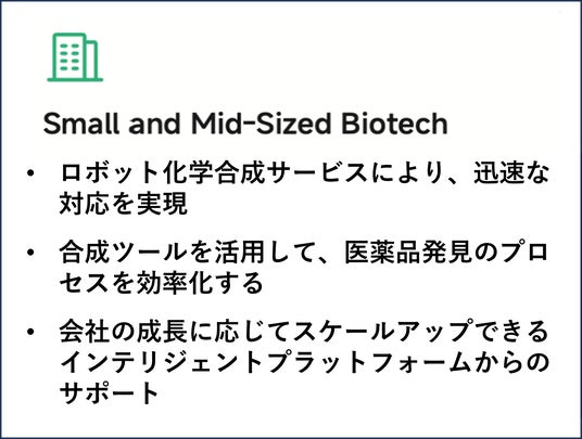 2018年の創業以来、AIおよび自動化技術を活用した化学合成の革新に取り組んでいます。Chemical.AIは、独自のレトロシンセシスアルゴリズム、豊富な化学データ、最先端のロボットラボ自動化技術を融合させ、化学合成の戦略、プロセス、生産性の向上を目指しています。