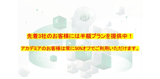 先着3社のお客様には半額プランを提供中! アカデミアのお客様は常に50%オフでご利用いただけます。