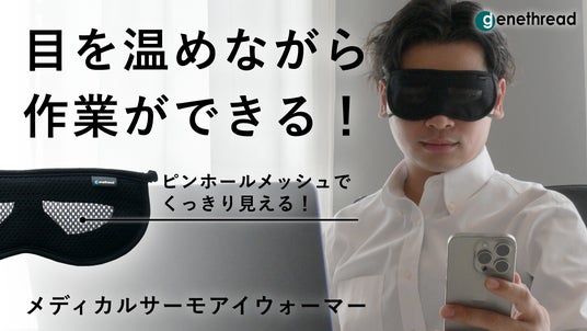 有限会社ジーンスレッド(本社:佐賀県杵島郡江北町佐留志、代表取締役:森本益生)は2024年9月2日、「メディカルサーモアイウォーマー」(Medical Thermo EyeWarmer)を、クラウドファンディング「Makuake」にて公開いたしました。細部にこだわる日本製の本商品は、日本ギフト大賞2020佐賀県賞を受賞した第1弾「G-TOUCH」ピンホールアイウォーマーの改良版で、マスクや眼鏡との併用も可能でありながら、素材もつけ心地もグレードアップしています。
