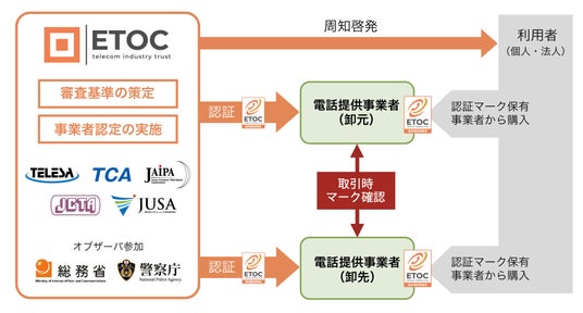 日本の5つの通信事業者系団体が認証団体(ETOC)を設立し、電話事業者向け認証制度を運用開始