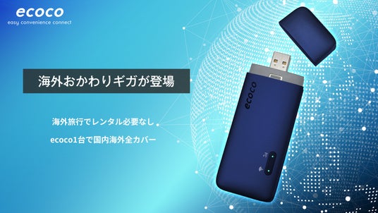 USB型スティックWi-Fi【ecoco(イココ)】に海外おかわりプラン新登場!国内使用はもちろん、渡航エリアに合わせてギガのおかわりを購入すれば、1台で国内海外ともに通信が可能!