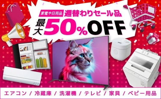 XPRICE本店で人気の冷蔵庫やテレビなどの大型家電はもちろん、家具やベビー用品ほか計100点近くが開催期間中に驚きの価格でご購入いただけます。