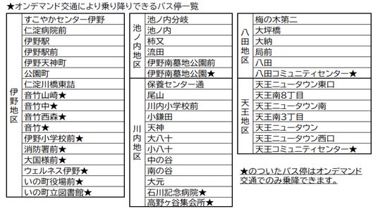 乗降場所:停留所マップ参照(令和6年10月2日現在)