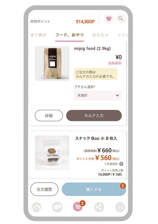 マイクロブタオーナー専用アプリ「mipig owners」に新機能追加!マイクロブタ飼育用品など、アプリにて購入可能に。