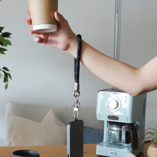 バッグやポケットにしまわず、手首にかけて持ち歩くスタイルへ。