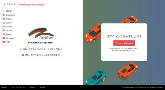 「あなたの愛車でココロ踊る体験を」をキャッチコピーに、この度T&Fアセットマネジメント株式会社 (神奈川県横浜市 代表取締役兼CEO:大越隆行)は、世界中のクルマ好きに特化したSNSサービス「CarVibes(R)(カーバイヴス)」を世界展開すべく、2024年10月1日にサービスローンチした事を発表致します。