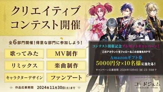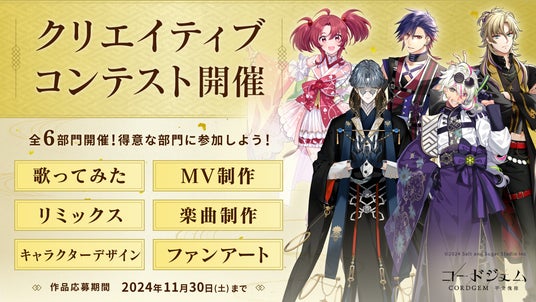 これまで「コードジェム」で発表してきた世界観やシナリオ、様々なキャラクターや音楽を題材に、ユーザー様からの熱のこもった作品・制作物のご応募をお待ちしております。
