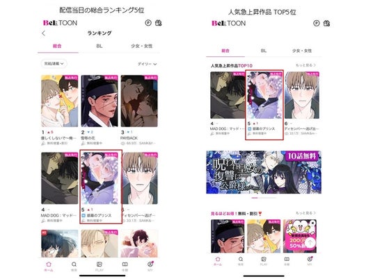 WEBTOON漫画『銀幕のプリンス』がBeLTOON (ベルトゥーン)にて総合5位にランクイン